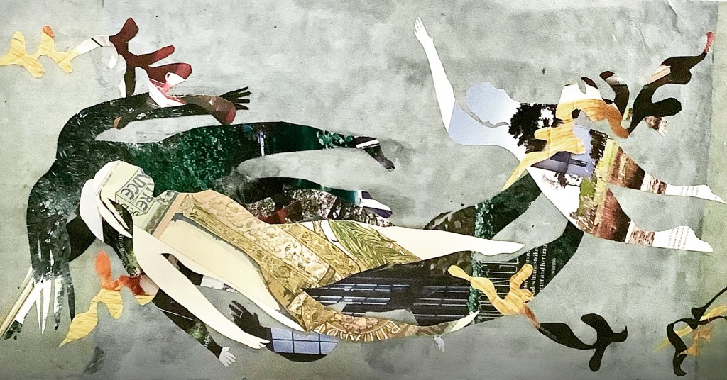 Salish Siren 12×24 Collage on cradle board katherinemclean8@icloud.com