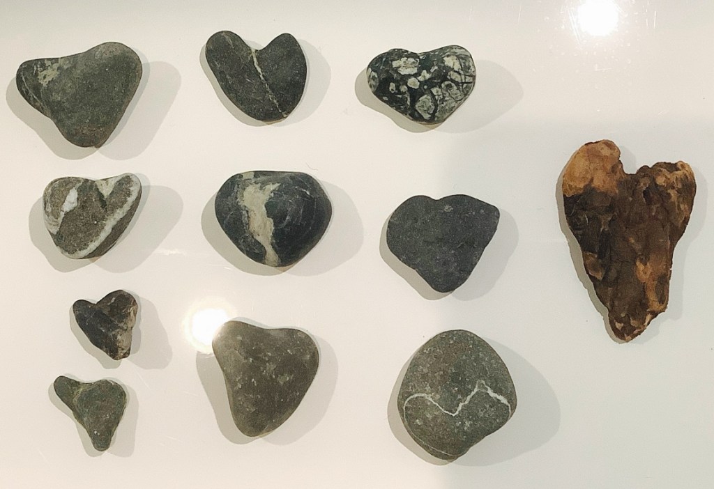 Since the news of her surgery, I have collected heart rocks on the beach. My intention is to give them to her when she is able to walk around the block and ride her bike. Everyday a heart for her.