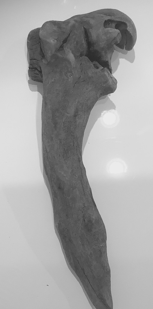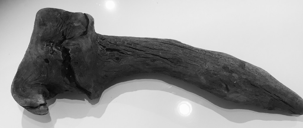 I found a piece of driftwood on the beach and was intrigued; it has hollowed out features in its face. So many possibilities for this piece. I love how the imagination begins to build a story about its origins, purpose, age. I have also been finding small round stone beads on the beach and I wonder about their origin.