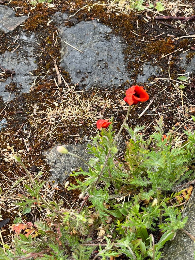 At the top of the Ross Bay hill a poppy greeted us on our way to the cove. So delicate and yet able to grow here on the hill in very little soil.