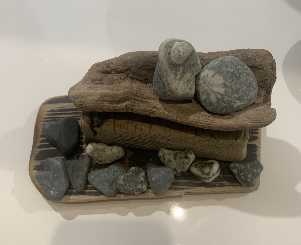 I bring a stone home everyday after my dip in the Salish Sea. I have quite a collection of favourites. The ones that tell a tale always intrigue, and I co-create a story with them…