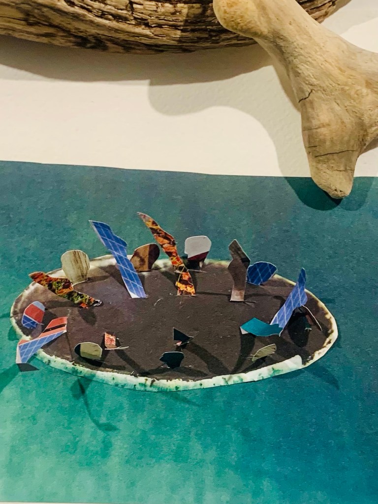 Having fun this afternoon making a small mock up piece to capture the fun of this mornings swim. A number of swimmers love watching the Olympics and thought it would be fun to prepare for an entry into synchronized swimming! All in jest of course! We have our own moves; the otter, the turn- about right and left, the left leg up, right leg up, and splits. This is usually accompanied by laughter and squeals. Lots of fun, as we idle away our 10-15 minutes in the cold Salish Sea.