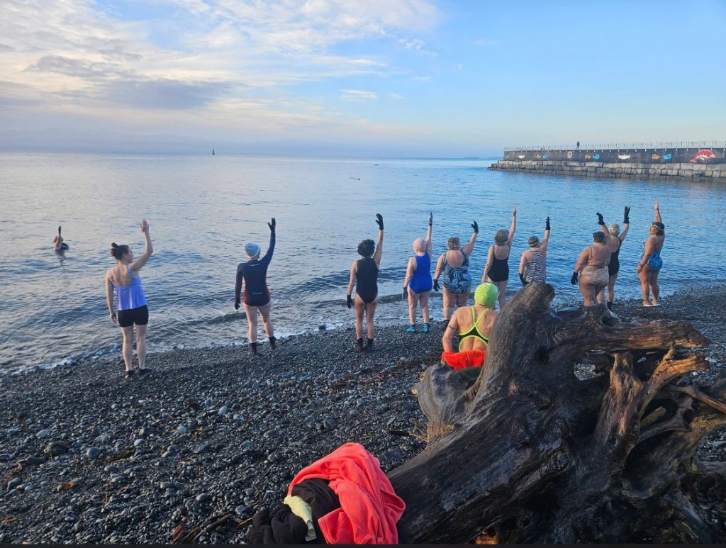 What a fun morning down at Breakwater. A fellow swimmer took this photo. This was the our entry into the Olympic synchronized swimming! Someone filmed it on fast speed. We laughed a lot and it was great fun.